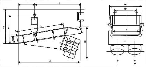 粉體振動給料機給料過程是利用特制的振動電機或兩臺電動機帶動激振器驅(qū)動給料槽沿傾斜方向作周期直線往復(fù)振動來實現(xiàn),當給料槽振動的加速度垂直分量大于重力加速度時,槽中的料被拋起,并按照拋物線的軌跡向前跳躍運動,拋起和下落在瞬間完成,由于激振源的連續(xù)激振,給料槽連續(xù)振動,槽中的煤連續(xù)向前跳躍,以達到給料的目的。