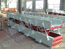SZF型慣性振動輸送機采用兩臺振動電機作為激振動源,運用自同步原理,兩臺振動電機反向轉動,使輸送機底部平衡架產生往復振動,經過主振簧與導向板簧的作用,帶動上部輸送槽振動,從而達到輸送物料的目的。該機是一種通用輸送機械,除用于水泥行業外,還可用于冶金、礦山、化工、電力等行業,是一種理想的新型輸送設備。
